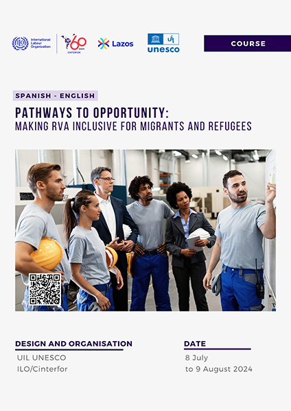 ILO-Cinterfor, with the financial and technical support of the Lazos Project, and in partnership with the UNESCO Institute for Lifelong Learning (UIL), are launching a training course entitled ‘Pathways to Opportunities: The inclusion of migrants and refugees in the recognition, validation and accreditation of prior learning (RVA)´.