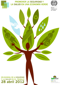 El Día Mundial de la Seguridad y la Salud en el Trabajo en 2012 se centra en la promoción de la seguridad y la salud laboral en una economía verde. El mundo está evolucionando hacia una economía más verde y sostenible. Aunque ciertos trabajos sean considerados como 'verdes', las tecnologías utilizadas pueden proteger el medio ambiente pero no resultar en absoluto seguras. Los empleos verdes deben ser también seguros y saludables para los trabajadores y no sólo proteger el medio ambiente.