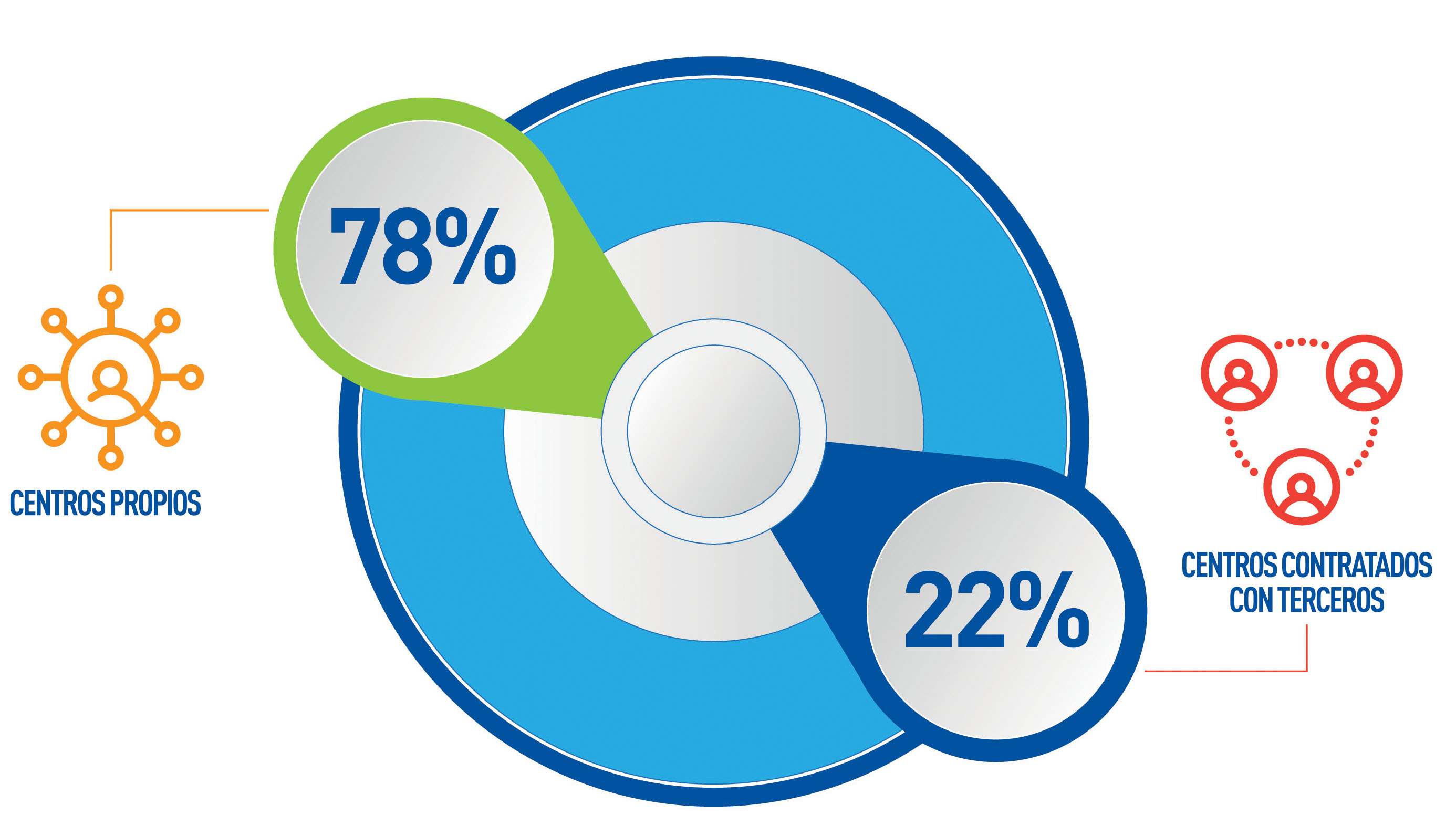 Un 48% de los centros son propios y un 44% son contratados con terceros.