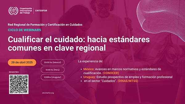 Se realizó el evento de lanzamiento del ciclo de webinars “Profesionalizar el cuidado, transformar la región”, impulsado por OIT/Cinterfor y la Red Regional de Formación y Certificación en Cuidados. Esta iniciativa forma parte del proyecto Fortalecimiento de la Cooperación Sur-Sur y Triangular para el Desarrollo de Competencias y Aprendizaje Permanente en la Economía de Cuidados, con apoyo de la Unidad de Alianzas Emergentes (Partnerships) de la OIT en Ginebra.