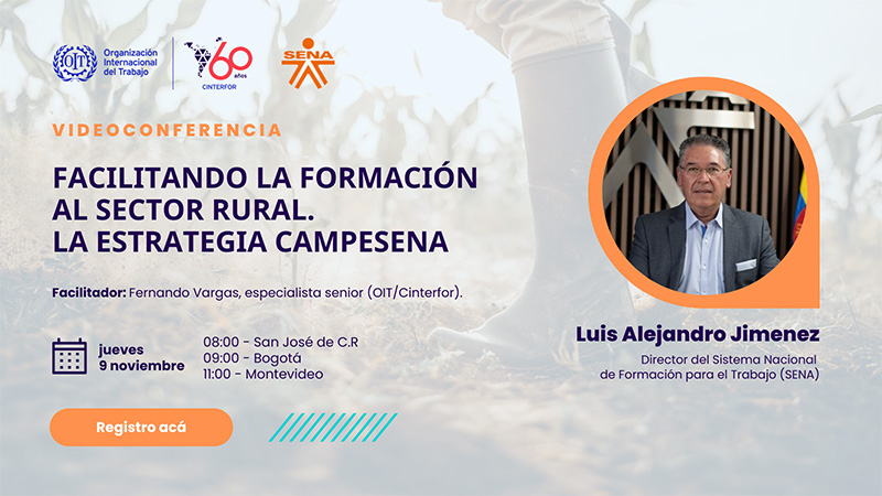 El 9 de noviembre de 2023, en el marco del Convenio entre Cinterfor y el SENA (Colombia), se organizó este evento virtual donde el SENA compartió su experiencia en la estrategia de inclusión y acceso a servicios institucionales para las poblaciones rurales, específicamente el Programa “CampeSENA”.
